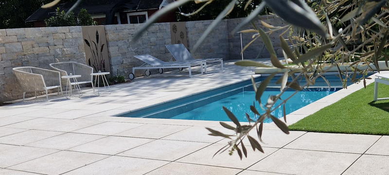 Es wurden sowohl Blockstufen, Schwimmbadränder und vor allem die 60x60x5 cm Platten eingesetzt,