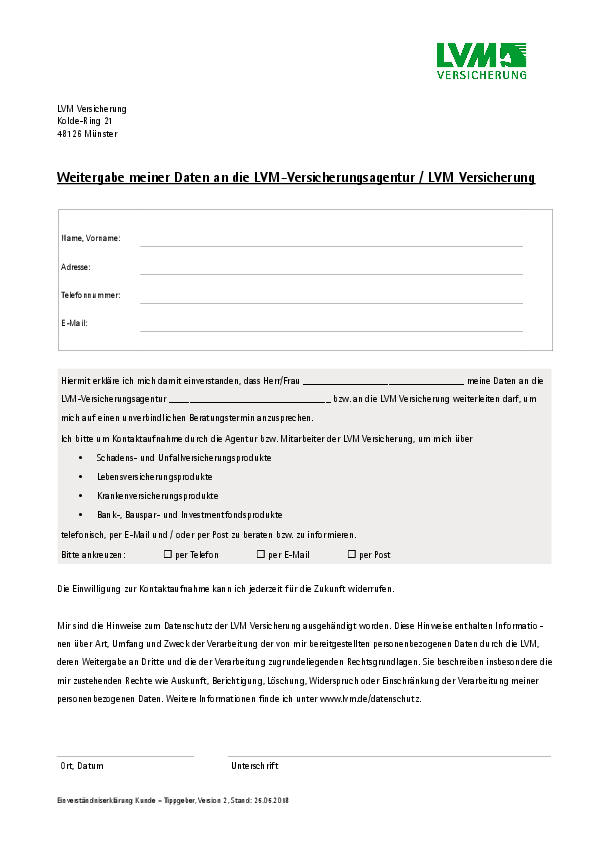 Die LVM Versicherung wird sich direkt mit Ihnen in Verbindung setzen und nach Ihren Wünschen einen kostenlosen, unverbindlichen und professionellen Versicherungsvergleich anzubieten. Sie erhalten eine maßgeschneiderte Beratung, die auf Ihre individuellen Bedürfnisse zugeschnitten ist.