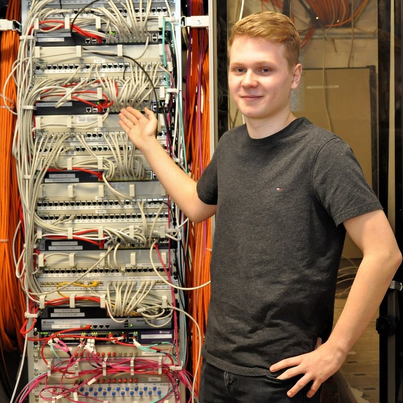 Sieben Mitarbeiter weist die IT-Abteilung zurzeit auf. Gemeinsam betreut man 400 Arbeitsplätze an 19 Standorten. Spürbar ist die Begeisterung für seinen Beruf, wenn man mit Luca Hilger spricht. Sein Alltag wird bestimmt durch Projekte wie Netzwerk-Neustrukturierung, Neu-Implementierung von WLAN und - vor allem - der Entwicklung eines Monitoring-Systems in der Zentralverwaltung Dremmen. „Monitoring bedeutet die zentrale Überwachung aller unternehmenskritischen Dienste, wie z.B. die Warenwirtschafts-Systeme, Telefonanlagen, Serverdienste, Netzwerkkomponenten usw.,“ erklärt Luca Hilger. - Man kommt aus dem Staunen nicht heraus. - Sein Ausbilder freut sich noch mehr über eine von Luca entwickelte Installations-Umgebung, die - vollautomatisiert - Computersysteme installieren kann. „Das bringt bei unseren 400 Computern eine Menge Zeitersparnis,“ unterstreicht Christian Robertz. „Nebenbei“ gehört die Betreuung dieser Computer-Arbeitsplätze zum Tageswerk unseres Azubis. Dies als „abwechslungsreich“ zu beschreiben, wäre wohl leicht untertrieben. Eine „Schwachstelle“ bei ihm zu finden, ist nicht einfach: „Ok, zwei Berufsschultage in der Woche sind nicht so mein Ding,“ gibt er zu, „auch weil mir der Lernstoff meist schon vertraut ist.“ Hat er doch nett gesagt, aber er arbeitet halt lieber. Gerade ist er 20 geworden und die obligatorische Frage nach seiner Freizeitbeschäftigung schlägt nun wirklich jede Vorstellung: „Am liebsten am Computer…!“