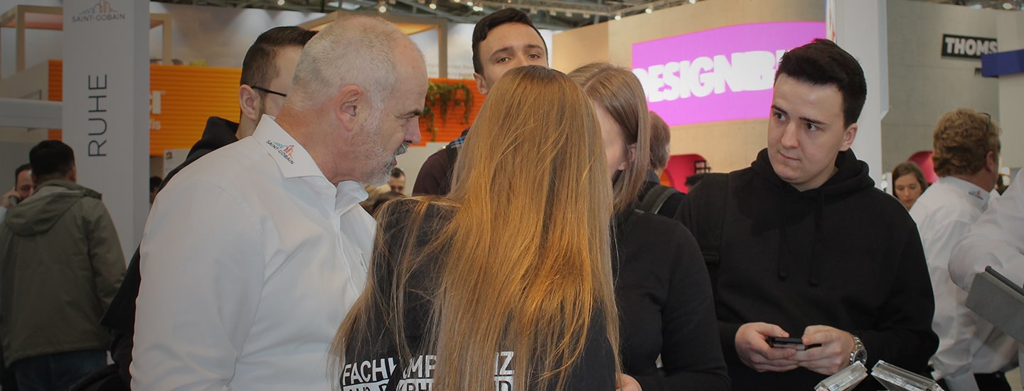 Vor Ort führte unter anderem der Bundesverband Deutscher Baustoff-Fachhandel die Azubis in Form einer Schnitzeljagd über die Messe und bot ihnen so einen ersten guten Überblick über Aussteller sowie interessante Gespräche mit Industrievertretern. Architekten, Planer, Investoren, Industrie- und Handelsvertreter, Handwerker stellten den interessierten Azubis neue Materialien und Systeme vor. Der zweite Messetag war der individuellen Erkundung der Ausstellung vorbehalten: Hier konnten die Auszubildenden ihre persönlichen Favoriten gezielt besuchen.