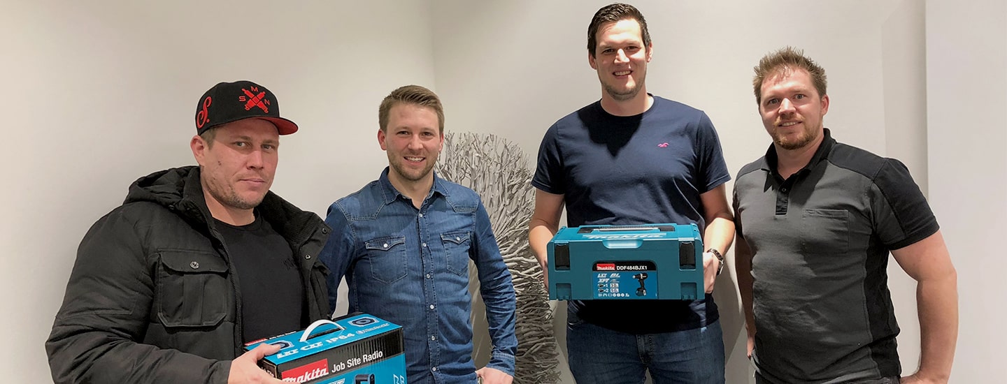 Herzlichen Glückwunsch an unsere Gewinner, die bei unserem Facebook-Adventsgewinnspiel „Schätze den Warenwert des Einkaufswagen“ teilgenommen haben. Die Gewinner der Plätze eins und zwei, Alex Backus (oben, 2.v.r.) und Patrick Drath (oben, 1.v.l.) empfingen freudig Ihre tollen Gewinne im Profizentrum von Martin Nietsch und Andreas Balven. Dominik Wolters, der dritte Gewinner im Bunde erhielt seinen Gewinn bei Mobau Pegels in Kempen aus den Händen von Alena Niermann (rechtes Foto). Das Mobau Wirtz & Classen-Team wünscht viel Spaß mit den neuen Makita-Geräten! Vielen Dank natürlich auch an alle Gewinnspiel-Teilnehmer, die dieses Mal leider kein Glück hatten.
